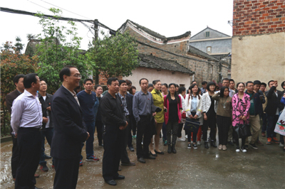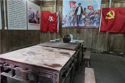 首先,全体党员来到行军会议旧址。迎面看到,一栋由上下两厅、砖瓦结构组合成的古典式民居。进屋后,只见上厅中央挂着一幅毛泽东率领工农革命军的照片,栩栩如生,令人敬仰。两边分别摆放着一面鲜红的党旗和一面鲜红的军旗,令人肃然起敬。大家一边用心聆听着讲解员的讲解,一边仔细品读着两边墙壁上整齐张贴着与高滩行军会议有关的图文介绍,共同回眸沧桑的历史,共同讴歌革命烈士无私奉献的壮志情怀。